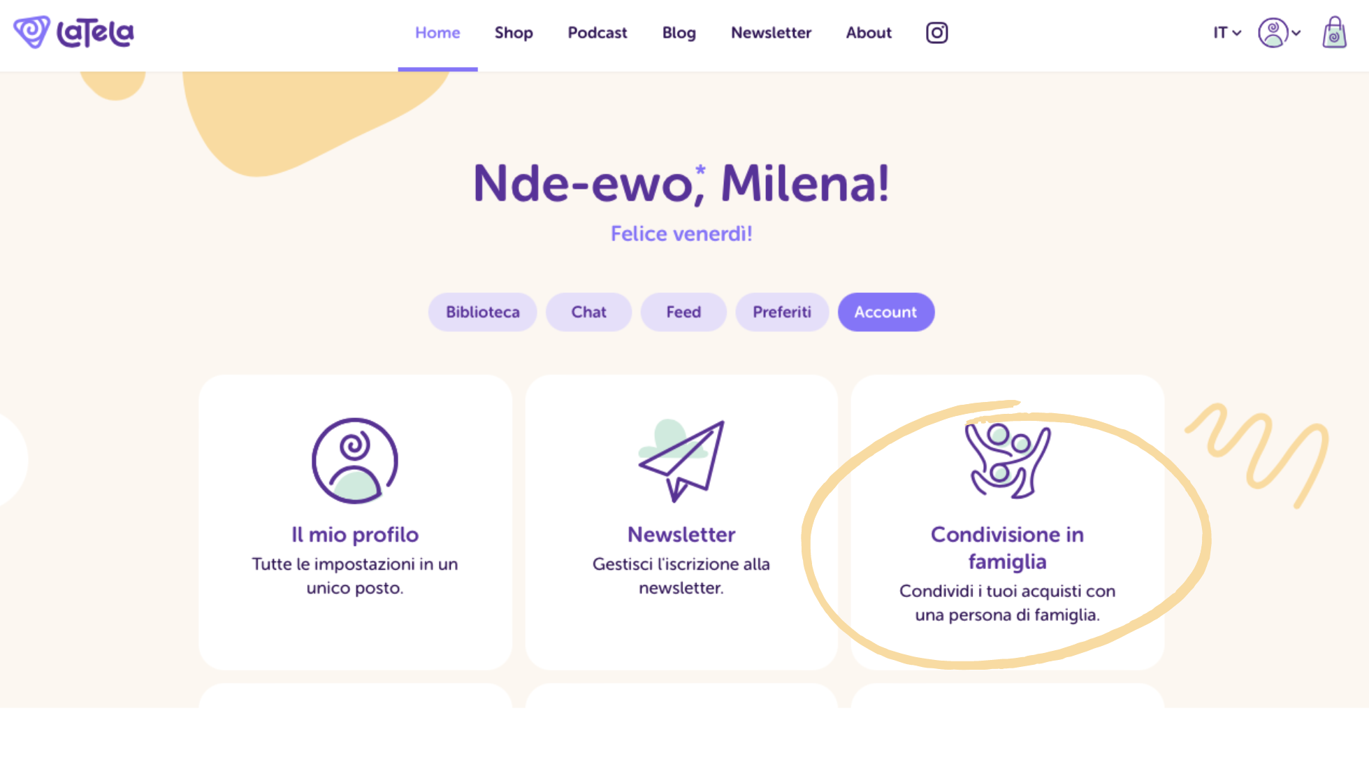 - Nel tuo account vai su: account - condivisione in famiglia - voglio condividere
